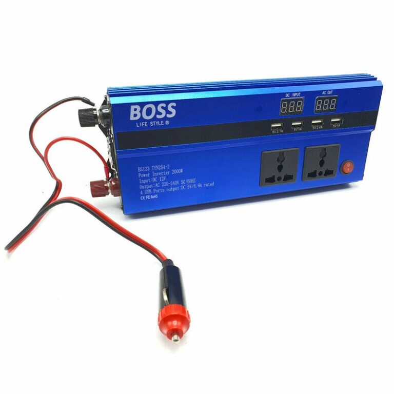 ورودی 12V خروجی 220-240V فرکانس 50 هرتز دارای توانی برابر با 2000W دارای 4 عدد پریز اتصال دوشاخه و 4 عدد پورت USB دارای بدنه آلومینیومی با وزن پایین و دفع گرمای بهینه گارانتی اصالت و سلامت فیزیکی