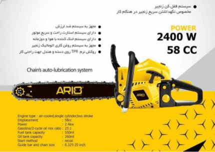 اره زنجیری بنزینی آریو مدل 2400 سایز ۵۰ سانت